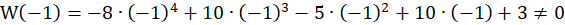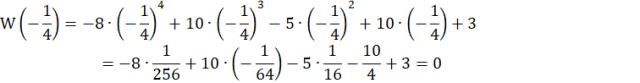 Zatem żaden z dzielników wyrazu wolnego nie jest pierwiastkiem W(x). Wielomian ten spełnia założenia o wymiernych pierwiastkach wielomianu o współczynnikach całkowitych, zatem podstawiasz odpowiednie wartości
