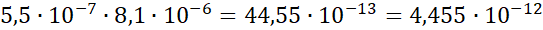 Mnożąc przez siebie potęgi o tej samej podstawie, wykładniki dodaj do siebie, a podstawę przepisz. Wymnóż liczby, które stoją przy potędze dziesiątki. Dziesiątki wymnóż osobno, zapisując wynik w postaci notacji wykładniczej.