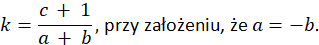 Przenieś - 1 na prawą stronę równania i podziel równanie przez a + b, przy założeniu, że a ≠ - b, ponieważ doszłoby do dzielenia przez 0: