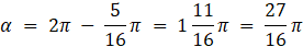 Miara kąta α to różnica kąta pełnego i wartości bezwzględnej miary kąta β: