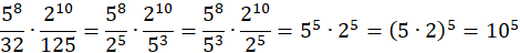 55 ∙ 25 = (5 ∙ 2)5 = 105