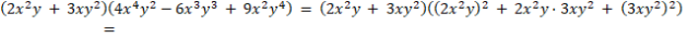 Wyrażenie przekształcamy stosując WSM: (a + b)(a2 – ab + b3) = a3 + b3.