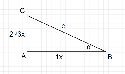 W celu wyznaczenia pozostałych funkcji trygonometrycznych oblicz przeciwprostokątna z twierdzenia Pitagorasa: