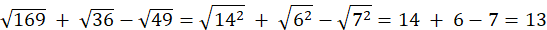 Zauważ, że 196 = 142 oraz 36 = 62 oraz 49 = 72: