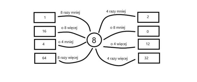 Wpisz w okienka odpowiednie liczby, posługując się informacjami podanymi na rysunku.