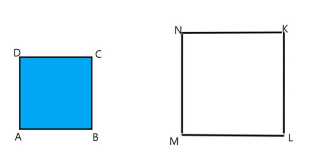 Narysuj prostokąt KLMN, aby bok KL miał taką długość jak przekątna kwadratu ABCD.