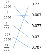 Uzupełnij ułamki dziesiętne i połącz równe liczby w pary.