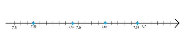 Punkty zaznaczone na osiach liczbowych podpisz odpowiednimi ułamkami dziesiętnymi.