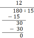 W tym zadaniu ułóż działanie, w którym liczba 180 jest dzielną, a liczba 15 dzielnikiem. Oblicz działanie sposobem pisemnym.