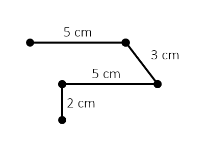 Łamana otwarta to połączone ze sobą końcami odcinki, które nie tworzą zamkniętej figury. Wybierz długości 4 odcinków tak, by ich suma była równa 15 cm, a następnie narysuj je w taki sposób by nie tworzyły zamkniętej linii.