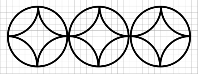 By narysować figurę w skali, policz długość promienia okręgów na kratkach, a następnie mnożąc przez liczbę ze skali oblicz wymiary nowej figury.