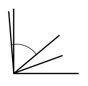 Podane są kąty 90°, 20° i 5°. Wykorzystaj ich sumy i różnice do narysowania podanych kątów.