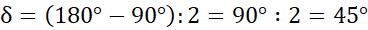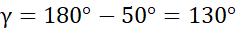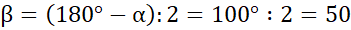 Pamiętaj, kąty wierzchołkowe są sobie równe – wykorzystaj tą zależność, licząc miarę kąta α. Następnie zwróć uwagę, że trójkąt o kątach α i β jest równoramienny, więc trzeci kąt to także β. Oznacza to, że miarę kąta β obliczysz, odejmując od 180° miarę kąta α i wynik dzieląc przez 2. Kąty β i γ to kąty wierzchołkowe – ich suma wynosi 180°. Kąt δ, podobnie jak β jest kątem przy podstawie w trójkącie równoramiennym.