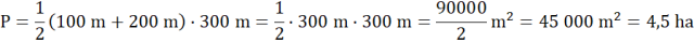 Oblicz pole trapezu. Pamiętaj, że 1 ha = 10 000 m2. Porównaj wynik z notką w prasie.