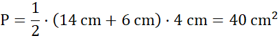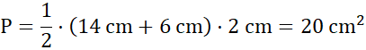Zapisz wzór na pole trapezu. Wstawiaj dane podane w punktach. Wybierz trapez, którego pole wynosi 10 cm2.
