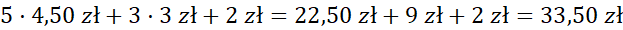 Na początek pomnóż każdy rodzaj kwiatu przez ilość w bukiecie i dodaj cenę przybrania. Pamiętaj, możesz pominąć znak mnożenia pomiędzy liczbą i literą. Następnie odczytaj ceny 1 róży i 1 tulipana oraz wstaw je w miejsce liter. Wykonaj mnożenie i dodawanie.