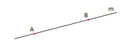 Na rysunku widać prostą m, odcinek AB, półprostą BA oraz półprostą AB.