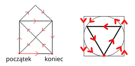 Figury jednobieżne to takie, które można narysować jednym pociągnięciem ołówka, bez jego odrywania od rysunku. Dodatkowo nie można rysować po już istniejących liniach.