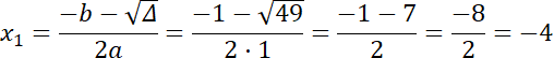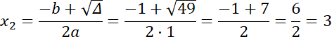 ∆ = b2 – 4ac = 12 – 4 · 1 · (–12) = 49