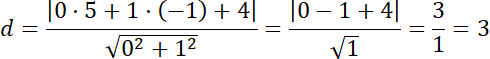 . Odległość punktu P(x0, y0) od prostej l o równaniu ogólnym: Ax + By + C = 0 wyraża się za pomocą wzoru:
