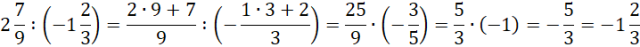 Wykonaj każde z działań. Zamień liczby mieszane na ułamki, a następnie dzielenie przez ułamek na mnożenie przez jego odwrotność. Pomnóż przez siebie liczniki oraz mianowniki. Pamiętaj, że jeżeli jedna z liczb w dzieleniu jest ujemna, to wynik będzie ujemny, a jeżeli obie są ujemne — dodatni.