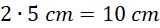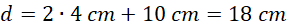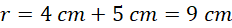 Oblicz średnice środkowego i mniejszych okręgów mnożąc długości ich promieni przez 2. Zauważ, że średnica dużego okręgu składa się z dwóch średnic małych okręgów i średnicy środkowego okręgu, natomiast promień – ze średnicy małego okręgu i promienia środkowego okręgu.