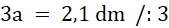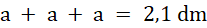 W tym zadaniu musisz obliczyć, jaką długość ma bok trójkąta równobocznego o obwodzie 2,1 dm.