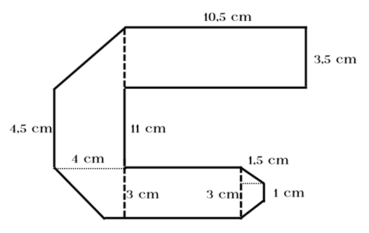 Podziel figurę na mniejsze części, oblicz ich wymiary w rzeczywistości, a następnie oblicz ich pola.