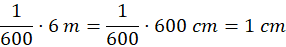 Skala: 1: 600 oznacza, że długość danego odcinka trzeba pomnożyć przez ułamek, który w liczniku ma 1, a w mianowniku ma 600.