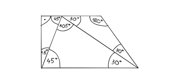 Na podstawie informacji o trapezie prostokątnym i jego dwusiecznych oblicz miary jednego z powstałych wewnątrz niego trójkątów.
