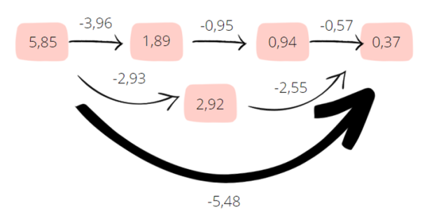 Aby obliczyć, ile równy jest odjemnik, odejmij 0,37 od 5,85.