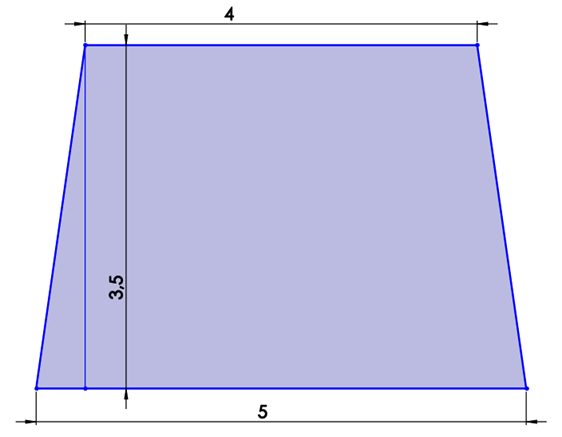 Musisz narysować trapez równoramienny, którego jedna podstawa ma 5 cm długości, druga ma 4 cm, a wysokość wynosi 3,5 cm.