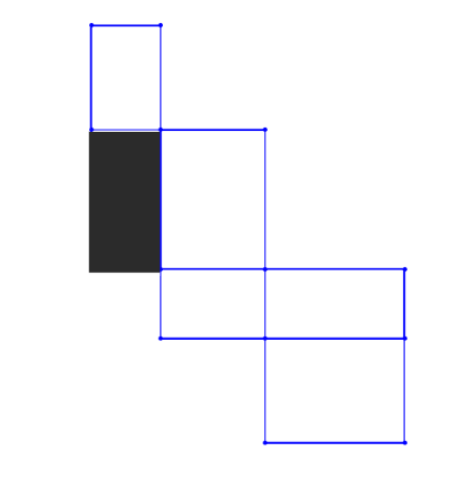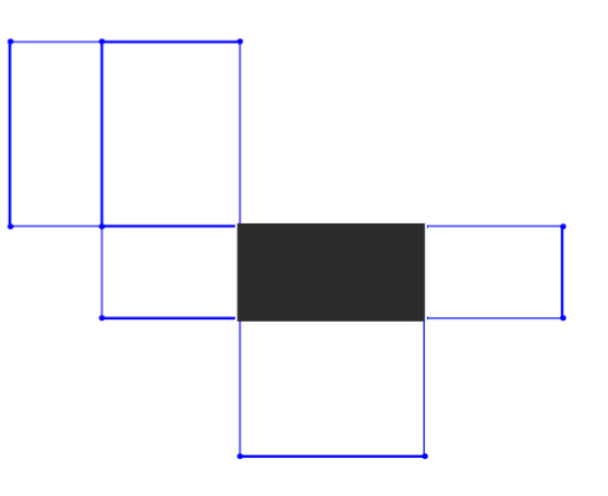 Musisz sprawdzić na ile sposobów można zrobić siatkę prostopadłościanu mając podany układ prostokątów i jeden dodatkowy prostokąt. Narysuj wszystkie możliwe opcje siatki w zeszycie.