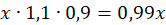 Cena pewnego towaru została zwiększona o 10%, po czym zmniejszona o 10%.