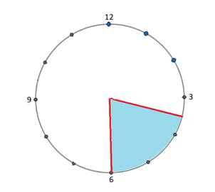 Jeśli masz kłopot z wyobrażeniem sobie tej sytuacji – weź do ręki model zegara i ułóż odpowiednio jego wskazówki. Zmierz powstałe kąty.