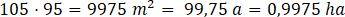 Oblicz powierzchnię działek według wzorów na pole odpowiednich figur. Potem przelicz wynik na ary – 1 a = 100 m2, 1 ha = 100 a.