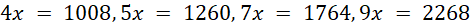 Wysokość wynagrodzenia pierwszego pracownika wynosiła 1008 zł, drugi pracownik otrzymał 2268 zł pensji, trzeci pracownik otrzymał wynagrodzenie w wysokości 1260 zł, a czwarty – 1764 zł.