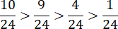 Sprowadzamy ułamki do mianownika 24: