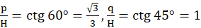Oznacz przekątne rombu jako p, q. Znając kąty pomiędzy przekątnymi a podstawą, ułóż równania z zależności trygonometrycznych