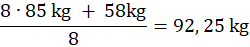 Do wagi ośmiu wioślarzy dodaj wagę sternika. Razem na osadzie znajduje się 8 osób, więc podziel tę wartość na 8 osób. Uzyskujesz średnią wagę wszystkich zawodników.