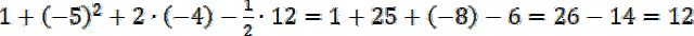Na początek oblicz wartość licznika: liczba ujemna podniesiona do kwadratu jest dodatnia, a iloczyn liczby dodatniej i ujemnej jest ujemny. Wykonaj dodawanie i odejmowanie obliczonych potęg i iloczynów. Wartość mianownika poznasz, mnożąc otrzymany wynik przez