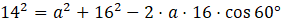 Obliczam długość a, korzystając z twierdzenia cosinusów: