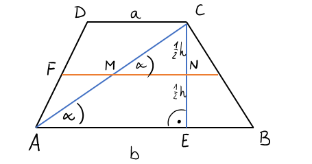 Wykonaj rysunek. Zapisz jak wyraża się pole trapezu ABCD. Następnie zauważ, że trójkąty ACE i NCM są podobne na mocy cechy kkk w skali