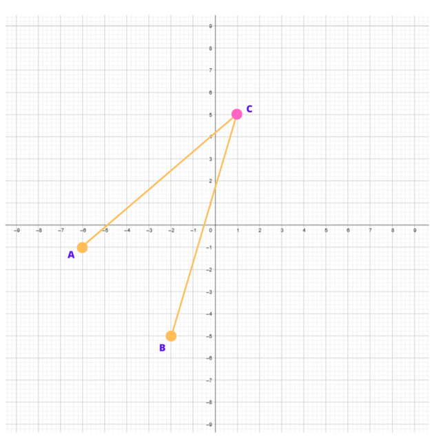 Na początek w układzie współrzędnych narysuj podane punkty A i B. Współrzędne = (x, y). Następnie wybierz taki punkt C, żeby narysować dwa odcinki AC i BC, które przetną obie osie. Odczytaj jego współrzędne.