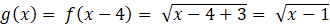 W tym zadaniu musisz podać wzór funkcji, którą można otrzymać przez przesunięcie wykresu danej w treści funkcji o 4 jednostki w prawo (jaki wektor odpowiada takiemu przesunięciu?).