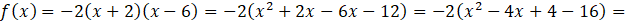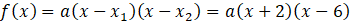 Ponieważ funkcja przyjmuje wartości ujemne tylko w przedziale (-2, 6), to jej miejscami zerowymi muszą być argumenty: -2, 6.