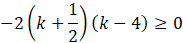 Przekształć dany w poleceniu warunek tak, aby możliwe było zapisanie go przy użyciu wzorów Viete’a. Podstaw wyznaczone ze wzorów wartości zależne od k, otrzymując nierówność kwadratową.