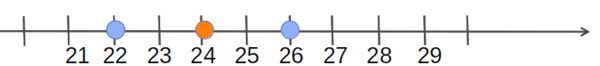 Oblicz drugą z liczb wziętej do średniej arytmetycznej, równej 24 oraz zaznacz je na osi liczbowej, jeśli jedna z liczb jest równa 26.