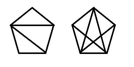 Na jednym z narysowanych pięciokątów narysuj przekątne wychodzące z jednego wierzchołka, a na drugim narysuj wszystkie jego przekątne.