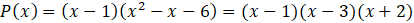 Aby rozwiązać zadanie, zacznij od przekształcenia P(x) do postaci iloczynowej. Zauważ w tym celu, że 1 jest pierwiastkiem P(x), a więc wielomian jest podzielny przez x – 1. Wykonaj dzielenie, korzystając ze schematu Hornera, a następnie zapisz wielomian P(x) w postaci iloczynu x – 1 oraz otrzymanego ilorazu. Iloraz również rozłóż do postaci iloczynowej.